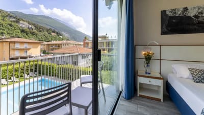 Torbole sul GardaHotel Holiday Sport & Relax***+Bleäget i Torbole Sul Garda på bekvämt gång avstånd från sjön. På hotellet finns pool. Perfekt beläget mellan naturens lugn och Gardasjöns pulserande energi. Våra rum är redo att välkomna dig med alla nödvändiga bekvämligheter: luftkonditionering, gratis WiFi och balkong med antingen utsikt mot bergen eller staden. Varje detalj har noggrant övervägts för att garantera en avkopplande och trevlig vistelse. Vill man ta en avkopplande tur längs sjön själv, erbjuder hotellet uthyrning av stadscyklar och elcyklar på begäran. Älskar du vandring och stavgång? Torbole har ett antal oförglömliga leder och vandringsleder att rekommendera, oavsett ditt tempo! Och i slutet av denna återhämtande fördjupning i naturen väntar verkligt oförglömliga vyer.
